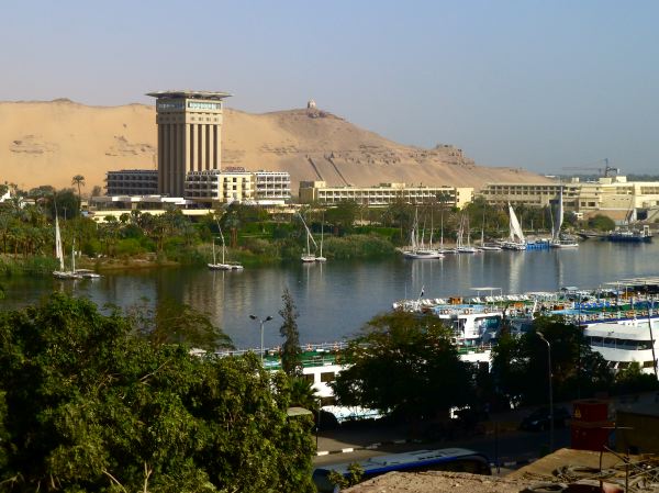 Mittags dinieren wir im eleganten Cataract-Sofitel-Hotel auf edler, den Nil überblickenden Holzterrasse mit Hibiskus-Saft (35 LE) und Cappuccino (40 LE) und begeben uns anschliessend auf´s Boot und hinüber zur beeindruckenden Philae-Island mit dem „Tempel von Philae“, der wichtigsten Kultstätte der Isis, Göttin der Magie. Ob ich da je durchsteige? Mitten im Nil ragt das Heiligtum in mehreren Tempeln heraus, ich bin fasziniert von wunderschönen Reliefs, feinsten Dekorationsarbeiten in allen Innen-und Aussenwänden. Abends gönnen wir uns ein romantisches Dinner an Board eines schwimmenden Restaurants, ich bekomme Nilbarsch in herzhafter nubischer Tomatensosse und gebratenen Nudel-vermischten-Reis, Georg schlemmt an Kebab (kleine angebratene Rindfleisch-Stücke), die auf einem Bett von Badounis (Petersilie) liegen und Zwiebeln und Tomaten als Beischläfer haben. Zum Dessert bestelle ich noch Asabee (gerolltes Zuckerstück mit Pistazien und Cashewkernen), Barazak (kleine Cookies mit Sesam-Kruste) und natürlich die hiesigen Basta, das Baklava (Blätterteigschichten in Honig) mit Nüsschen.