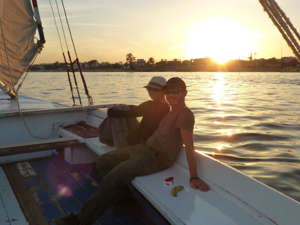 „What did you say to my wife!?“,Georg rastet aus. Wir befinden uns an der Corniche, der Uferpromenade des Nils und wollen nicht noch mal mit der Pferdekutsche fahren. Seen that, done that, und das war auch wirklich romantisch und schön. Nun sollen wir es wieder tun, und wieder und wieder, wenn es nach dem Typen auf dem Kutschbock geht. Und offensichtlich wird kein Nein akzeptiert. „Come with me", „Ride a Camel!", „City-Tour!", „Souvenirs!", „You must buy..." hier und „You must do..." dort. Langsam geht mir die Bequatscherei ganz schön auf die Palme. Grundsätzlich versuche ich, höflich zu bleiben. Doch das „Fuck you!“ geht ganz klar zu weit. Georg springt dem Typen beinahe ins Gesicht, er zeigt kein Bereuen, keine Entschuldigung, kein Nix. Doch, er sagt, er hätte nie „Fuck you“ gesagt. Lügner!Mit Müh und Not verhindere ich eine Schlägerei, die Freunde des Typen schubsen ihn weg, lautes Arabisch, ich ziehe Georg und bald schon beruhigen wir unsere Nerven auf einer Felucca, dem ägyptischen Segelboot. Bei einem Sunset-Cruise lassen wir den Tag vor unseren Augen passieren, während der Luxor-Tempel langsam an Land vorbeizieht... Besuch des Museums mit gefundenen archägologischen Schätzen, so-schön-bekanntes-Essen im McDonalds mit Blick auf den Luxor-Tempel, gründliche Besichtigung desselben. „Hey, hey, Bashish!“, „Look, here you can take a beautiful picture“, raunt mir dort vor Ort ein Security zu und zeigt mir eine Stelle an der Wand.