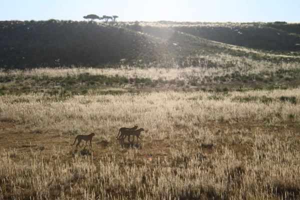 Beim abendlichen Barbecue blickt mir aus drei Metern Entfernung eine Comic-Figur ins Gesicht. Erst denke ich an Halluzinationen, dann an Ice Age, ich reibe mir die Augen, und er steht immer noch vor mir: riesige feucht schimmernde Kulleraugen, spitze Megaohren, kleine Nase. Der muss einem Disney-Zeichner aus der Tinte geronnen sein! Der Kleine ist hellbeige, nur 40 Zentimeter groß und Mama Natur hat ihm einen dichten fluffigen Schwanz mitgegeben. Ich rühre mich, er zuckt, sträubt die Haare, wird zum Ball, springt hoch und wusch ist der weg. Wie im Cartoon, die Augen noch größer, in einer nanosekunde 540 Grad umgedreht und auf Vollspeed davon. Ich laufe zum Auto und blättere nach. Sein Name: Fennec, der kleinste Fuchs der Welt! Sein Lebensraum ist die Sahara, er ist nachtaktiv, unterwegs in Gruppen bis zu 10 Tieren, „wild range of animal and plant food“. Das war´s also...die Reste unserer Ofen- äh, Grillkartoffeln...