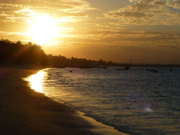 Das „Grande Fiesta“ gibt’s dann auch am Samstag und wir freuen uns für alle Hashims und Josés darauf, aber derweil legen wir ein paar Hühnchen auf den selbstgebastelten Strand-Grill mit illustrem Muschel-Rost-Halter und sitzen verzaubert vorm lila-rot-goldenen Abendlichterrausch. José legt sich zu uns, also wörtlich. Vor den Grill. Nachdem die Sonne untergegangen ist, frägt er nach einem Schluck aus der Schweppes-Dose. Glücklich schleicht er sich mit den Wünschen „La La Salaam“ (wir lernen: Swahili für „schlaf schön“) von Dannen...