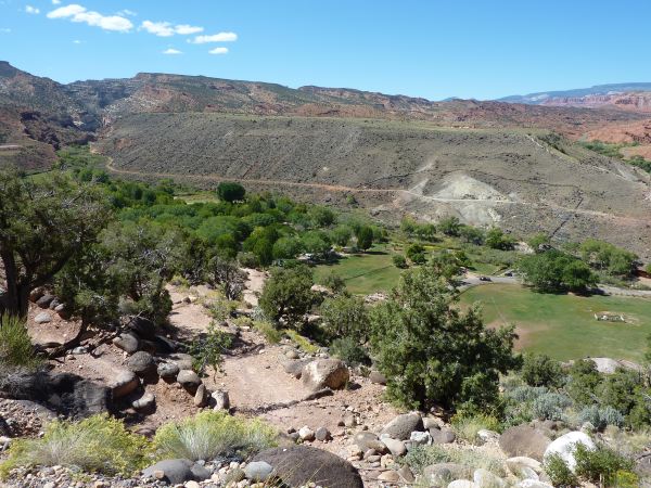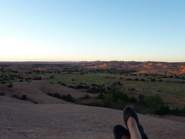 Nach einem Abstecher zum „Patagonia“-Outlet (1100 East/Highland Drive, Tipp von Arthur via Karen - DANKE!!) brechen wir auf Richtung Moab, „Arches Nationalpark“ mit seinen faszinierenden Steinbögen und Naturwundern ist unser nächstes Ziel. Nach fünf angenehmen Fahrstunden erreichen wir die Stadt und lassen uns zehn Kilometer weiter, auf den „Sand Flats“ ($ 10/Nacht), einem romantisch gelegenen Campground umgeben von glattgeschliffenem rostroten Sandstein, nieder.