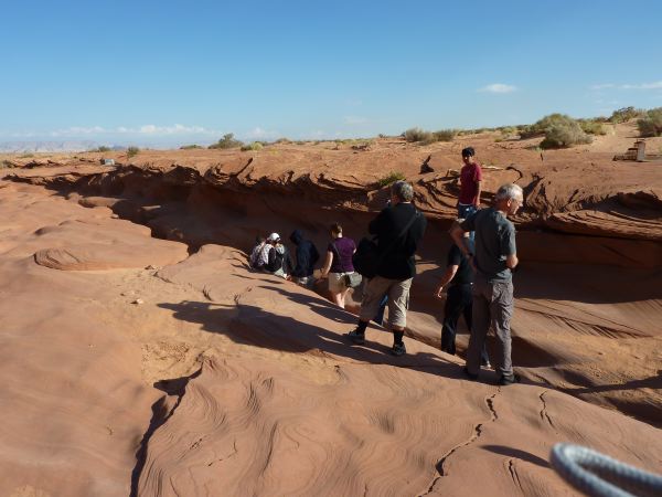 Über abschüssige Wege mit 200 Metern abfallendem Fels geht’s nach zwei turbulenten Stunden wieder zurück zur Ranch zum wartenden Georg, und ich weiß jetzt Bescheid: „Schatzi – ob jetzt „Turtle-Butte“ oder „Camel-Mountain“, dort drüben jedenfalls ist der „Pissing-Horse-Point!“.