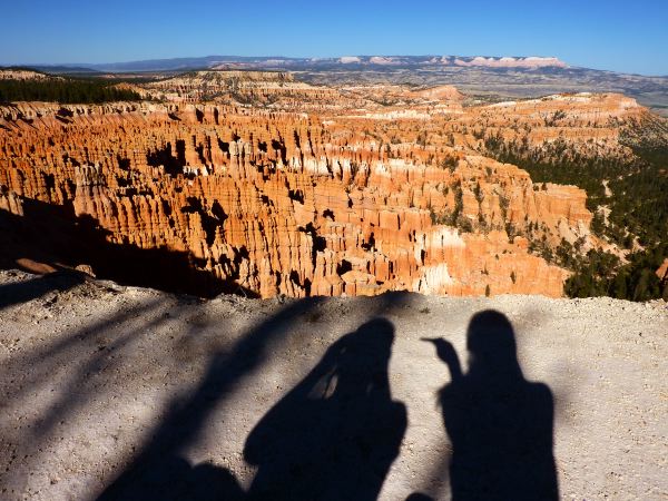 Am Eingang ($ 5) gib´s ein Info-Blatt mit dem Rundtrail und elf lustig benannten Aussichtsplätzen in die Hand und ich komme mir ein bisschen vor wie beim Rorschach-Test. Am „Elefant-Butte" geht’s vorbei Richtung „Three Sisters“ (sollte eigentlich heißen: zwei Schwestern und der kleine Georg) hin zum „Camel-Mountain“ - der für mich ein bisschen weit hergeholt ist. Trotz großtmöglicher mentaler Glanzleistung kann ich darin kein Kamel erkennen. Gerade als wir uns über die Form des Felsen partout nicht einigen können (Georg sieht nämlich auf J-E-D-E-N Fall einen Kamelkopf vorne rechts), ich bin eher auf Schildkröte gepolt, erscheint ein weißes Ich-Mach-Andrea-Glücklich-Schild vor uns: