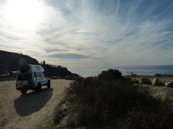 Möwen, Raben und kleinere Vögel flattern über mich hinweg, der gleißenden Sonne entgegen. Das hellblaue Wasser überschlägt sich in der Ferne in Dreimeterwellen, einige Surfer versuchen ihr Glück, die Gischt blubbert unter meinen Beinen und ich laufe darüber. Wir verbringen die letzten Tage in den USA am "South Carlsbad State Beach", liegen in der Sonne, spazieren am Strand und erledigen letzte Formalitäten bezüglich des Grenzübertritts nach Mexico. Beim AAA, dem amerikanischen ADAC können wir eine KFZ-Haftpflicht für Mexico abschließen ($ 140/ 3 Monate), ab Guatemala greift eine Neue, die wir schon in Deutschland vorbereiten konnten.Abends treffen wir Keith, der mit quietschenden Reifen, breitem Grinsen und lockeren Sprüchen neben uns einparkt. Seit 30 Jahren verbringt er jeden Winter an der Baja, sofort kommt er auf zwei drei Bierchen zu uns rüber und markiert die schönsten Must-Do´s auf unserer Landkarte. Nun haben wir etliche „X“ und einige „No“s auf der Landzunge vermerkt und einen wesentlich besseren Überblick, sowie Bombenlaune auf die Baja bekommen.