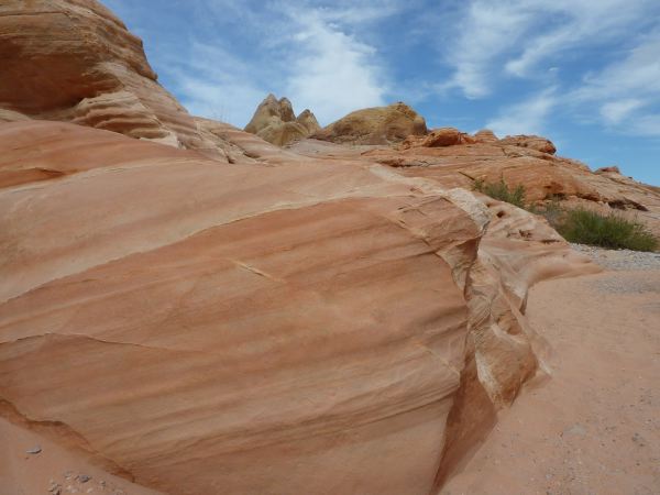 Am Ortsausgang von Vegas schlagen wir noch im „Town Square“ zu, ein fabelhafter Ort zum Shoppen mit Läden wie Abercrombie&Fitch, Oakley, Banana Republic und dem altbekannten H&M. Die Tüten gefüllt, die Sonne stechend und die Laune blendend tuckern wir über „Las Vegas Bay“ nach „Calville Bay“, halten unsere Beine in den erfrischenden Lake Mead und nächtigen schließlich für $10 (Las Vegas hat dann doch seine Spuren in unserem Reisebudget hinterlassen) in der „Echo Bay“. Am Tag darauf geht’s weiter zum „Valley of the Fire State Park“. Rote Steinformationen, eingeritzte „Rock Art“, helle Domtürme, kleine Arches – und diesmal gar „Seven Sisters“, da hat nun „little George“ wirklich keinen Platz mehr. Etliche Filme wurden hier schon gedreht, unter anderem „Star Trek: Next Generation“, „1 Million BC.“ oder „The Professionals“, Überbleibsel vom Set können bewundert werden.Wir latschen durch die vielfarbigen Gesteinsschichten, vanillefarben bis schokobraun, Marmorkuchen lässt grüßen, doch, man ahnt es, irgendwie bin ich durch mit Steinen und freue mich auf die nächste Nacht in Vegas, denn wir beschließen zum Wochenende wieder hinzufahren...