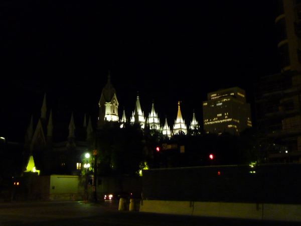 Am nächsten Tag kurven wir noch etwas die Straßen rauf (zwecks Utah State Capitol) und runter (Temple Square) und lassen uns von Sister Hicks im Mormonen-Tempel-Visitor-Center über ihren Glauben aufklären. Salt Lake City wurde von Sektenführer Brigham Young mit dem geflügelten Wort „This is the Place!“ gegründet, als er mit einer Vorhut seiner Anhänger auf der Suche nach einem geeigneten Ort für das amerikanische Reich Zion war. Sister Hicks ist etwas beleidigt, als sie uns nicht so recht begeistern kann, der mormonischen Kirche beizutreten, keinen Alkohol mehr zu trinken, zehn Prozent unseres Gehalts an ihren „lebendigen“ Propheten abzugeben und dazu auch noch auf Kaffee und Tabak zu verzichten. Als Georg jedoch ablehnt „The Mormon Bible“ mitzunehmen (Georg´s Kommentar: You think,