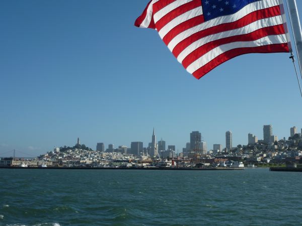 Rauf und runter laufen wir die Hügel, kurzer Ausflug zum gelb-rot-quirligen Chinatown, machen ein paar Fotos von der Lombard Street, da kringelt sich die Straße zwischen bunten Blüten so lustig, wandern weiter zur Fisherman´s Wharf, lauschen den schreienden Möwen und Klampfe spielenden Musikern, bewundern die Bilder der Straßen-Künstler und gehen ganz tourimäßig an Board eines Schiffes. Sehen wir die Golden Gate wenigstens jetzt noch mal ganz nah – diesmal spektakulär von unten. Als würde sich die Stadt für gestern entschuldigen, brennt die Sonne auf uns herab, kein Nebel weit und breit, wir nähern uns langsam via Meer der Golden Gate, das „International Orange“ der Brücke glänzt über dem Pazifik über uns! Im Ohr die Kopfhörer bekommen wir nebenbei die komplette Geschichte San Francisco´s und Alcatraz zu hören. Die $ 20 sind hervorragend angelegt (ähem, Danke für die Einladung, Sabine!) Wir tuckern einmal um die Gefängnisinsel herum, steuern auf die Skyline der City zu, sehen den Coit Tower und die Transamerika Pyramid mal von einer anderen Seite und kehren um Einiges schlauer von der Tour zurück. Ein Cocktail im Hard Rock Cafe am Pier 39 rundet unsere San Francisco-Tour ab, um das Programmfür heute abzuschließen, springen wir für 5 Dollar auf ein Cable Car und lassen uns den Weg zurückfahren. Eigentlich sollte das ja schneller gehen, als zu Fuß, doch Michelle Obama ist in der Stadt, und hält genau hier im Viertel eine Konferenz, das wir just in dem Moment durchqueren wollen – der komplette Block wird abgesperrt und wir harren der Dinge. Meine Finger frieren fast an der Stange fest als wir endlich die Fahrt fortsetzen dürfen. Morgen wird der letzte Tag unseres gemeinsamen Urlaubs mit Georg´s Schwestern sein, und ein tränenreicher Abschied am Flughafen wird folgen...