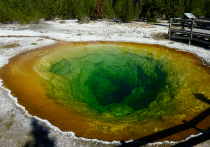 Büffel, Elche und Bären geben sich die Hand und tanzen unter Geysiren umgeben von Regenbogenfarben.