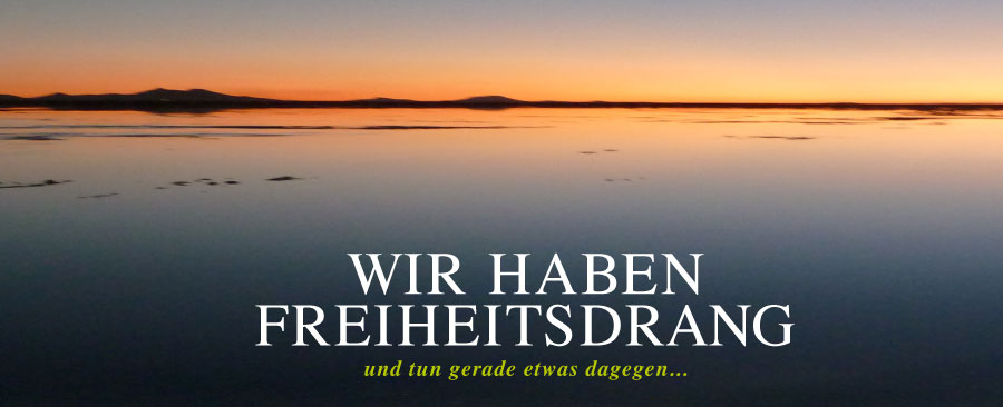 Wir sind die zwei mit Freiheitsdrang und tun gerade etwas dagegen. Während Du gemütlich Dein flauschiges Kissen im Rücken zurechtrückst, kannst Du mit auf Tour gehen – das hier ist der virtuelle Terminal. Realer Abflug für uns war Anfang Juli 2010 in München. Nach Ankunft im kanadischen Halifax sind wir direkt umgestiegen in unser rollendes Toyota-Heim und haben seitdem die ganze Welt als hübschen Vorgarten. Im Sinne des Intro halten wir uns jetzt kurz, klick einfach durch und schau, wo wir gerade sind - äh, waren... denn nach 3 Jahren On The Road sind wir jetzt brandneu wieder daheim... strange!